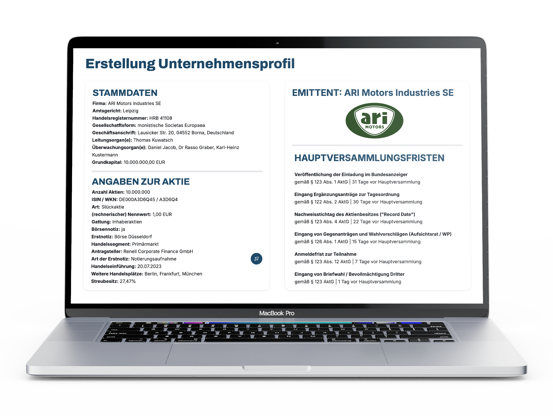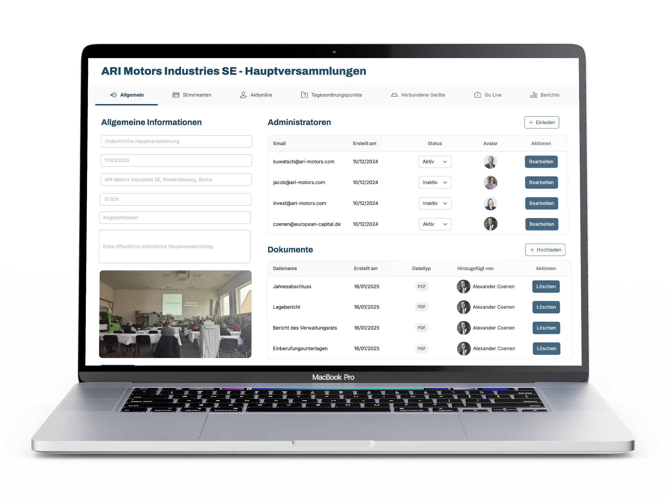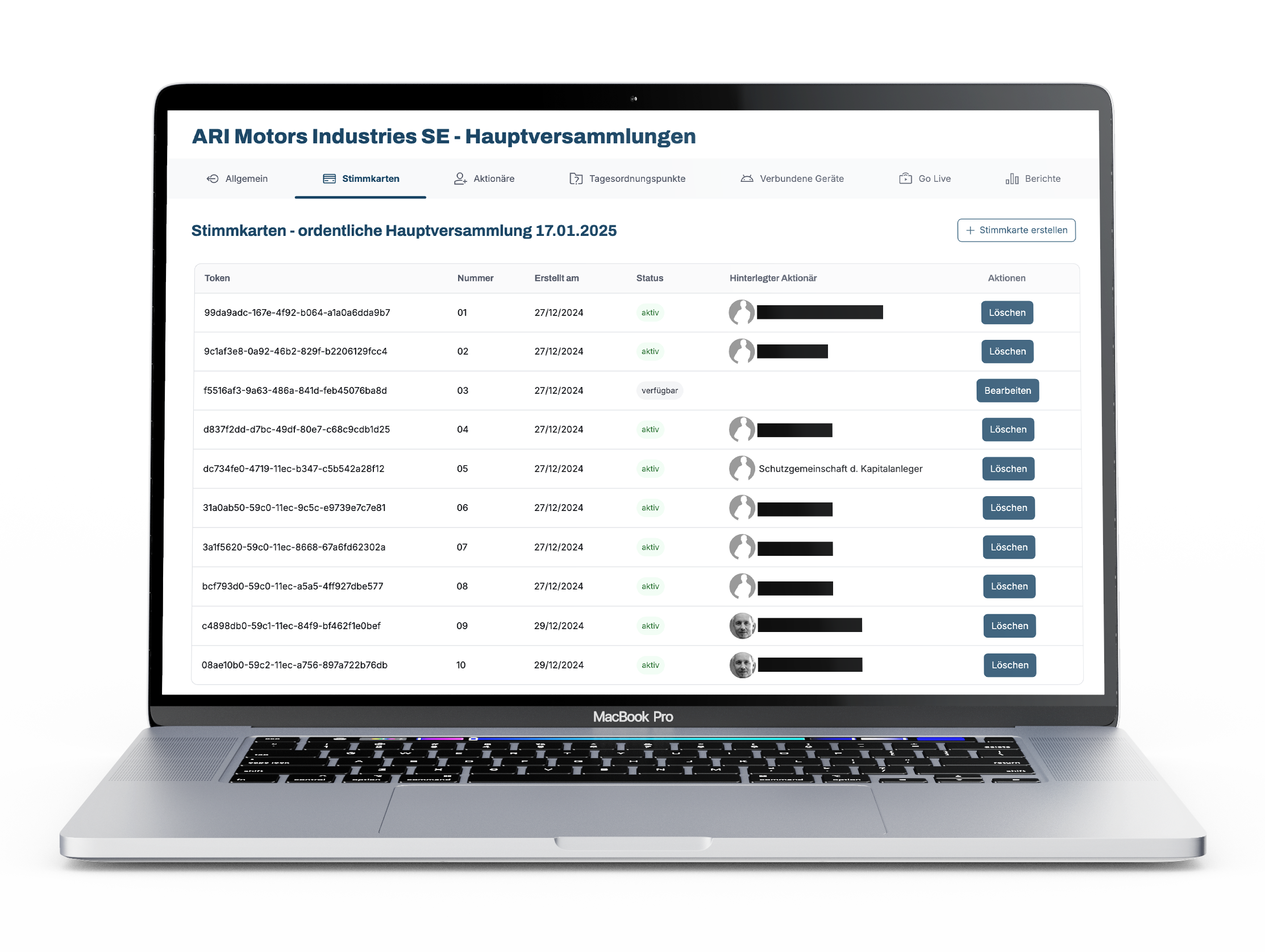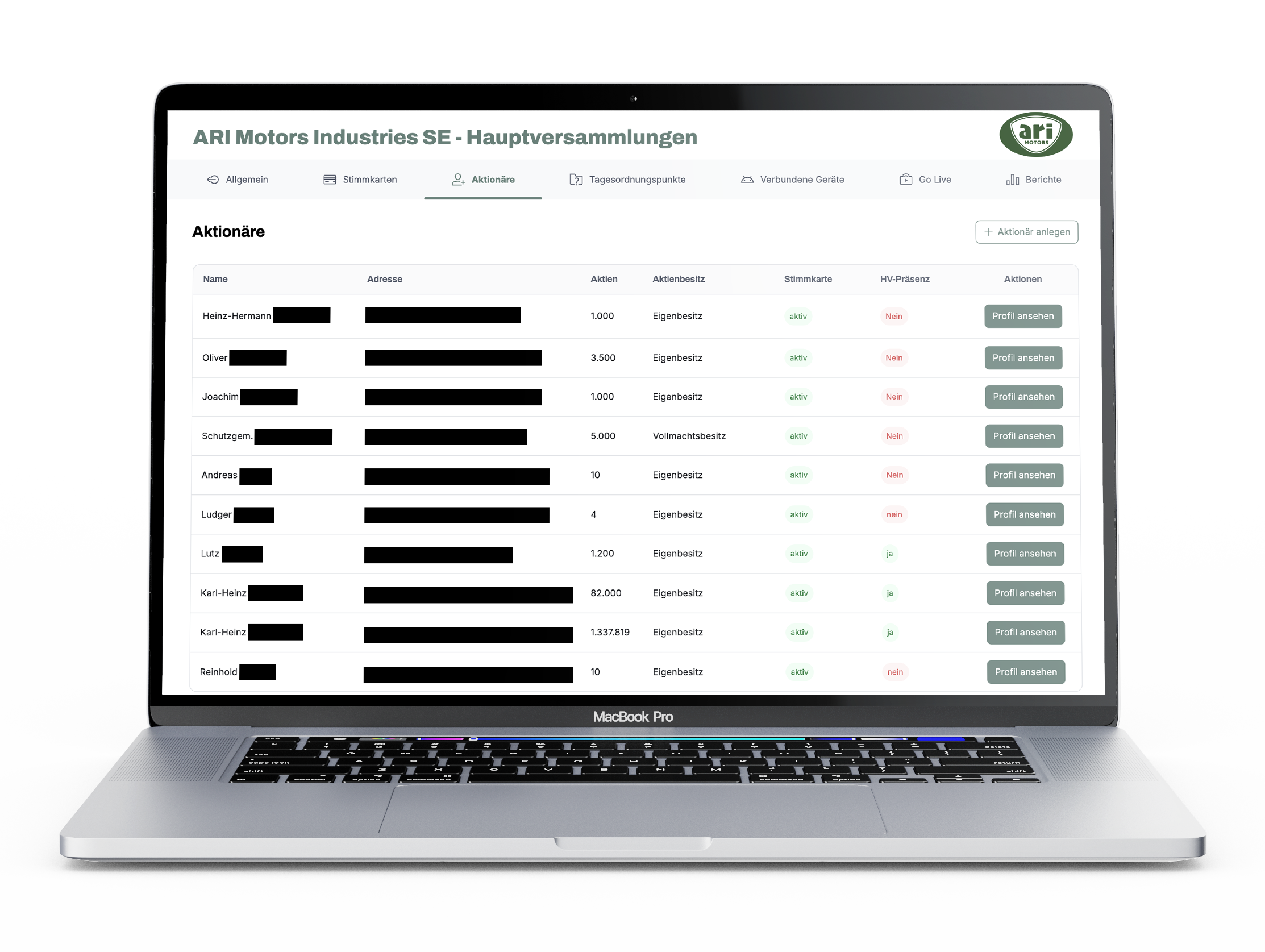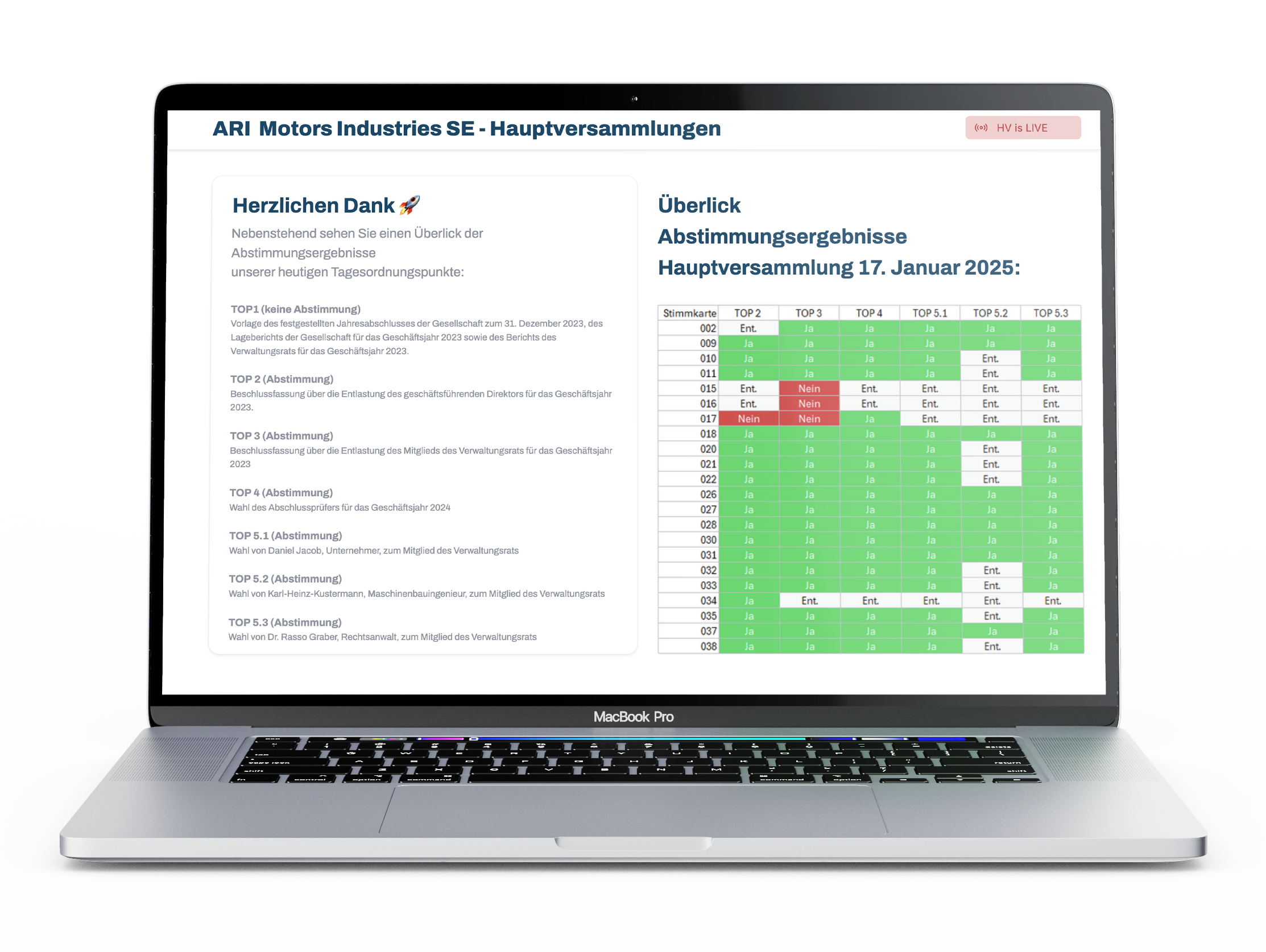 Zusätzlich werden die Anzahl der Tagesordnungspunkte zur Abstimmung sowie der Startzeitpunkt der Hauptversammlung angezeigt.